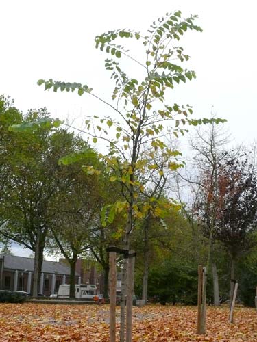 In de herfst geel verkleurend blad dat dan naar vers gebakken brood kan ruiken.