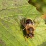 Deze zweefvlieg ("blinde bij") zit graag op de esdoornbladeren te zonnen.