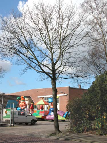 Ook de sporen op de schors verraden dat deze boom langs een inrit staat.