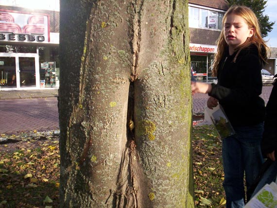 Veel esdoorns hebben hier gaten in de stam, kijk maar.