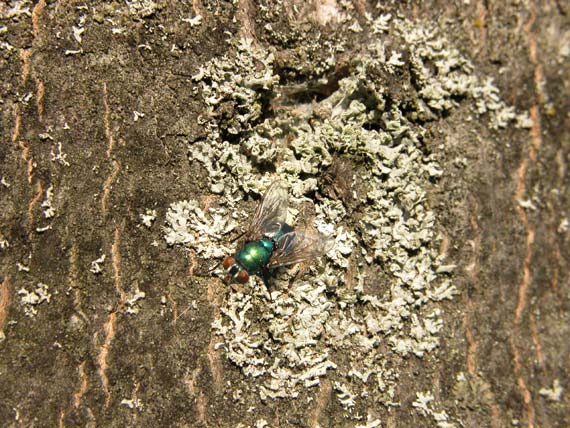 Vliegen zitten graag te zonnen op de stam.