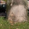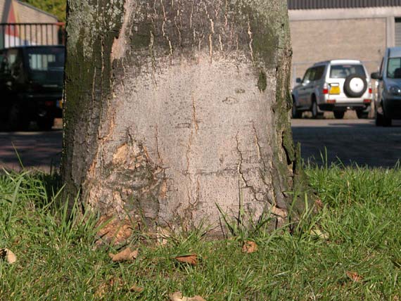 Door hondjes kaalgeplaste en uitgeloogde stamvoet.