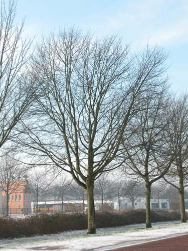 De kale stam is niet van nature, maar werk van mensen die de onderste takken er afzagen. De sporen zijn overal nog goed te zien.