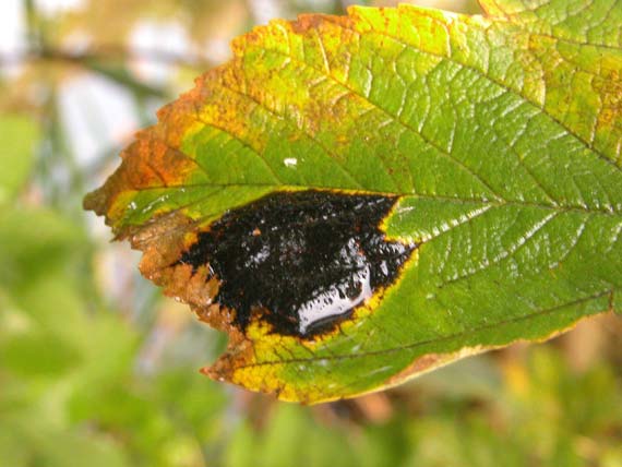 Zwarte nerven of zelfs compleet zwarte bladeren zijn meestal het gevolg van "roetdauw": een schimmel die gaat groeien op de door bladluizen afgescheiden "honingdauw".