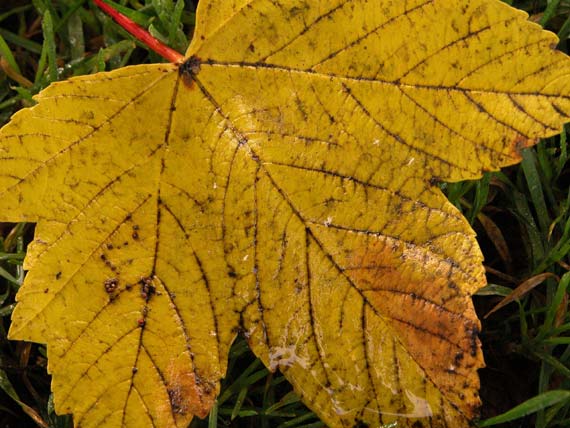 Door het zout dat in de winter wordt gestrooid kan het esdoornblad bruine randen krijgen.