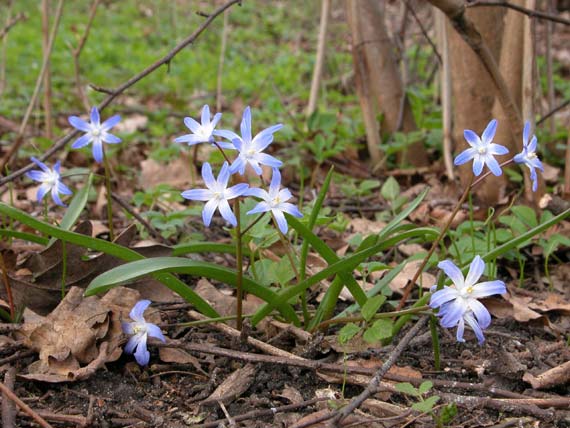 Deze blauwe bosbloempjes bloeien voordat het eikenblad de zonnestralen opvangt.