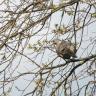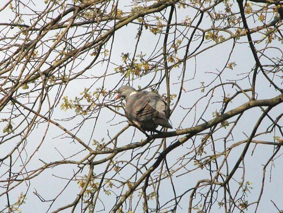 Net uitlopende takken in het voorjaar met daartussen een houtduif.