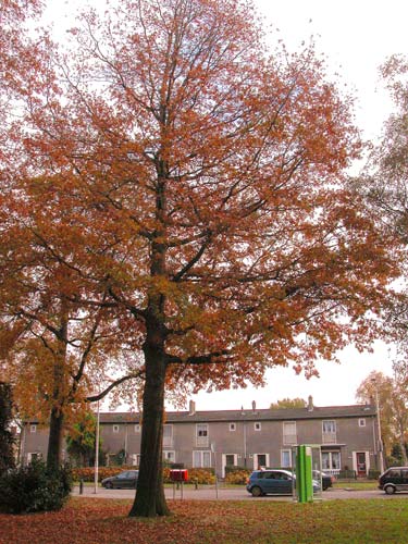 "Quercus palustris" betekent letterlijk 'eik van het moeras'. Maar deze eik groeit hier alleen maar dankzij het feit dat het oorspronkelijke natte gebied hier is opgehoogd met zand ten behoeve van woningbouw.