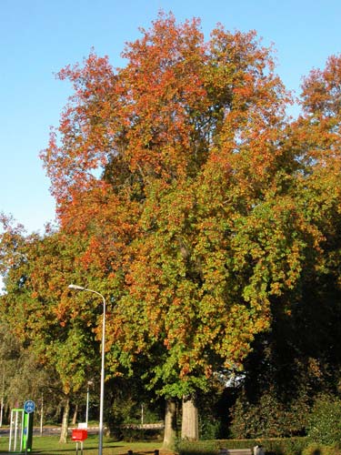 Deze eik werd hier onder andere speciaal aangeplant vanwege de fraaie herfstkleuren.