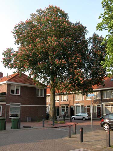 Valt op door zijn rode bloemen. Het is een kruising tussen de witte paardenkastanje en een Amerikaanse soort (Aesculkus pavia). De boom is nog uit de bouwtijd van de wijk.