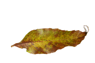 Bruin en geel verkleurd deelblaadje in de herfst, gevonden door Azhaar Al-Kasid