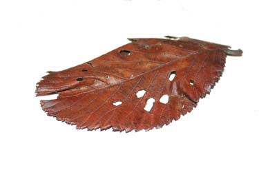 Herfstblad met opvallende vraatsporen, gevonden door Savannah van Gorp