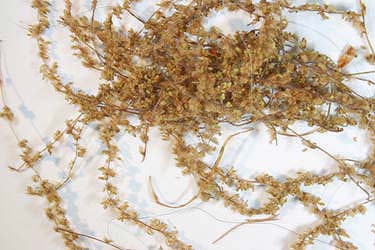 Op de grond gevallen mannelijke stuifmeeltrosjes, gevonden door Kim van Eijndhoven