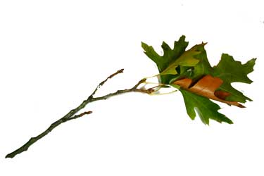 Takje met nog groene bladeren op 30 oktober in de uitzonderlijk warme herfst van 2006, gevonden door Roos Glorius