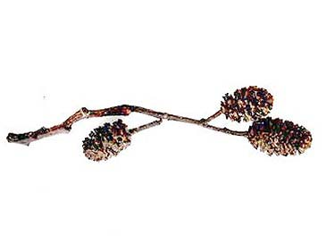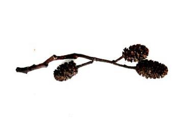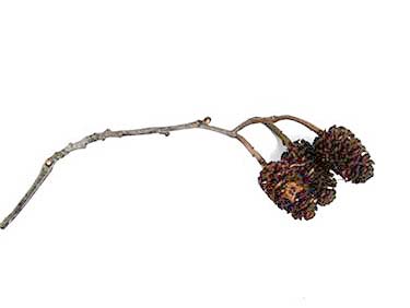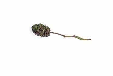 Tros met oude vruchtkegels, ofwel "elzenproppen", gevonden door Joep Mater