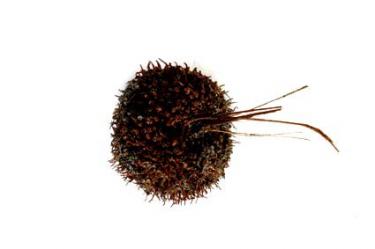 Uit de boom gewaaide vruchtbol, gevonden door Cato Oomen