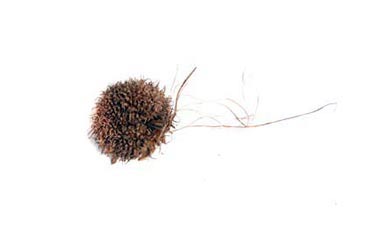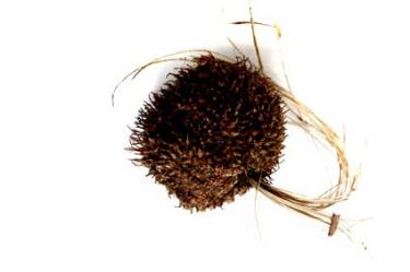 Vruchtbol met tot losse vezels verrafelde vruchtsteel, gevonden door Dylan Slikboer