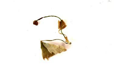 Uit de boom gewaaid jong blad met net ontloken bloesembolletje, gevonden door Frits van Gaal