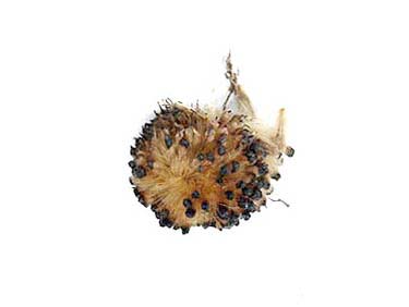 Zaden met zaadpluis in oude vruchtbol, gevonden door Sam de Kroon
