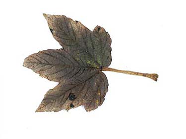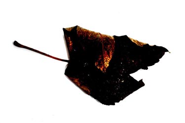 Donker, deels door schimmels verkleurd herfstblad, gevonden door Femke Oeijen