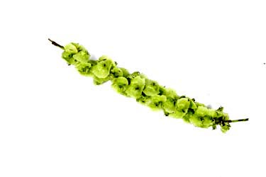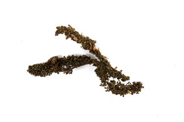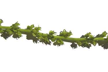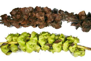 Tros met jonge, nog groene zaden en tros met oudere, al bruine zaden, gevonden door Kees van de Sanden