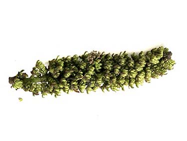 Deel van hangende bloeistengel met jonge zaden, gevonden door Koos Pepels
