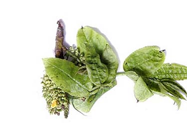Stukje tak met jong blad en jong bloeikatje, gevonden door Kris van Kasteren