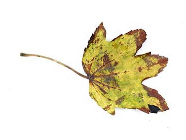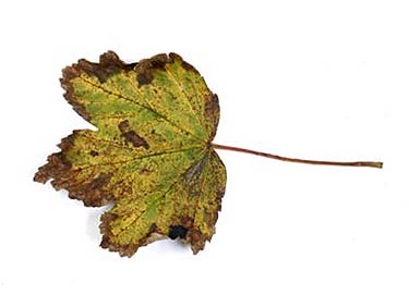 Geel verkleurd blad met bruine bladtoppen, gevonden door Emma Florusse