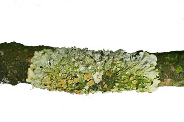 Deel van tak met korstmos, gevonden door Ilse Mutsaers e.a.
